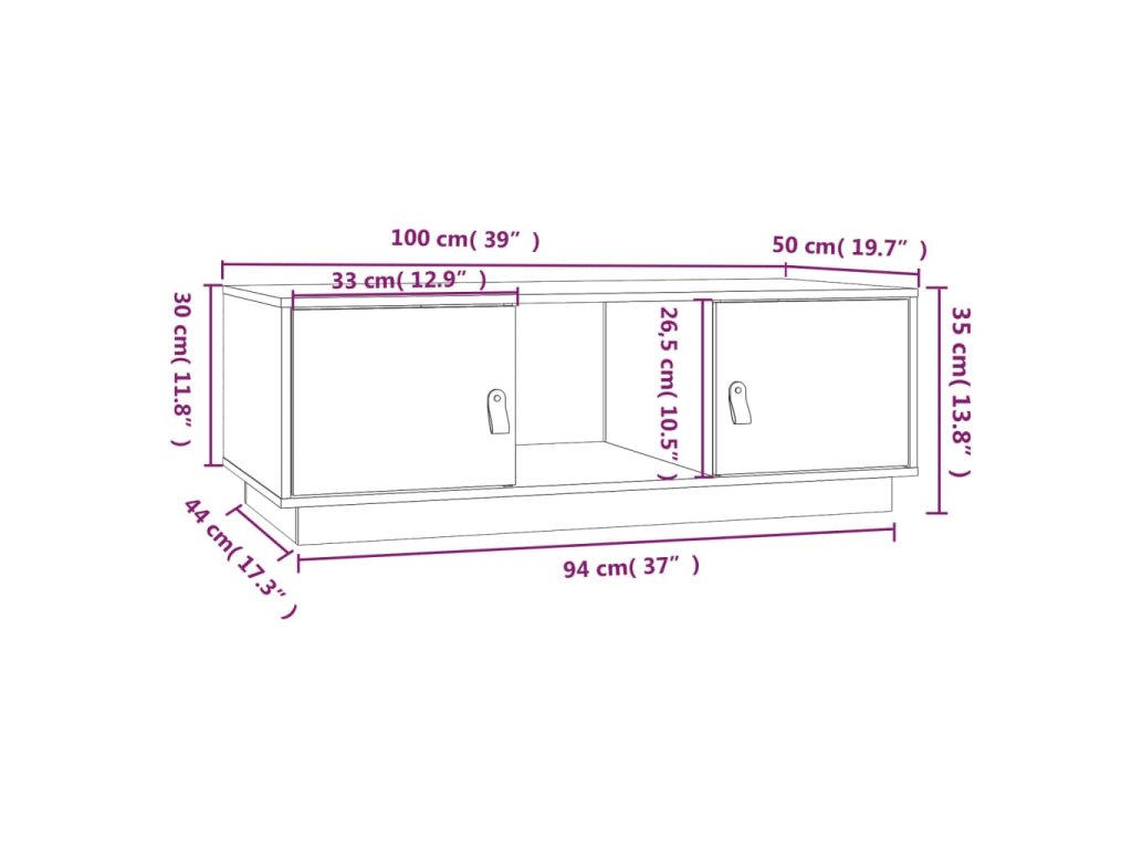 Konferenční stolek černý 100x50x35 cm masivní borové dřevo 818269