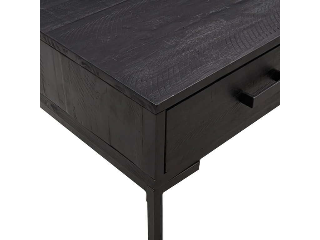 - Masivní borové dřevo: Odkládací stolek je zhotoven z masivního borového dřeva, které vykazuje hrubé hrany, vady a škrábance, což mu dodává vintage industriální vzhled.