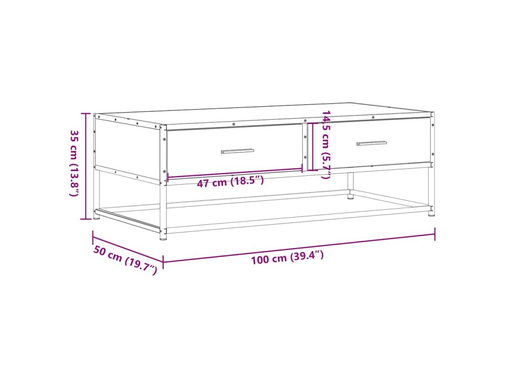 Konferenční stolek dub sonoma 100 x 50 x 35 cm kompozit a kov 848780