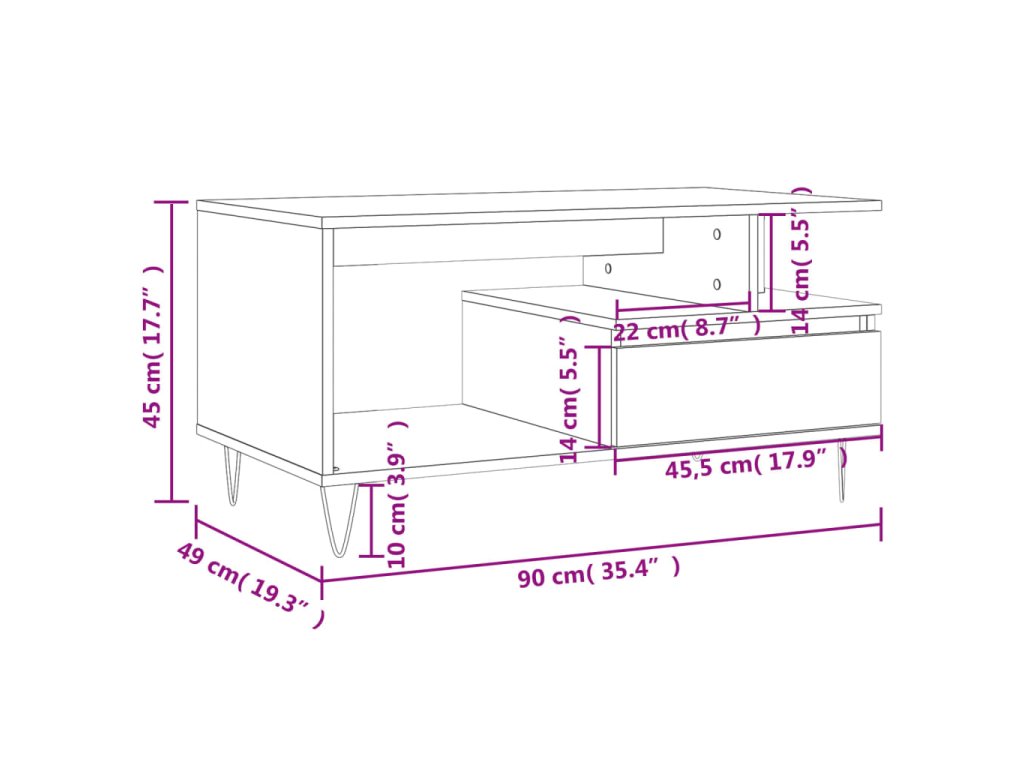 Konferenční stolek dub sonoma 90x49x45 cm kompozitní dřevo 831023