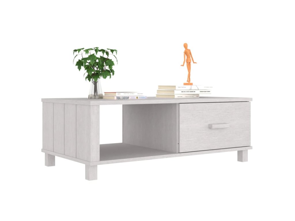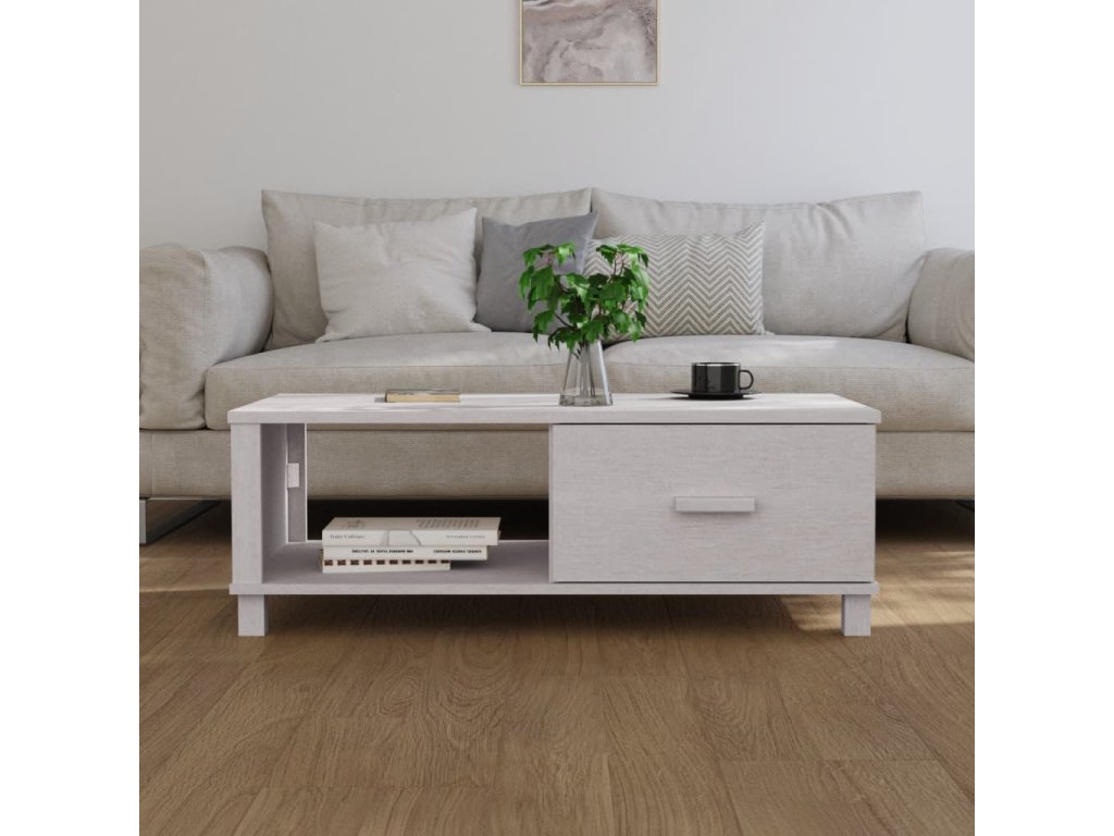 Konferenční stolek HAMAR bílý 100 x 55 x 35 cm masivní borovice 340453