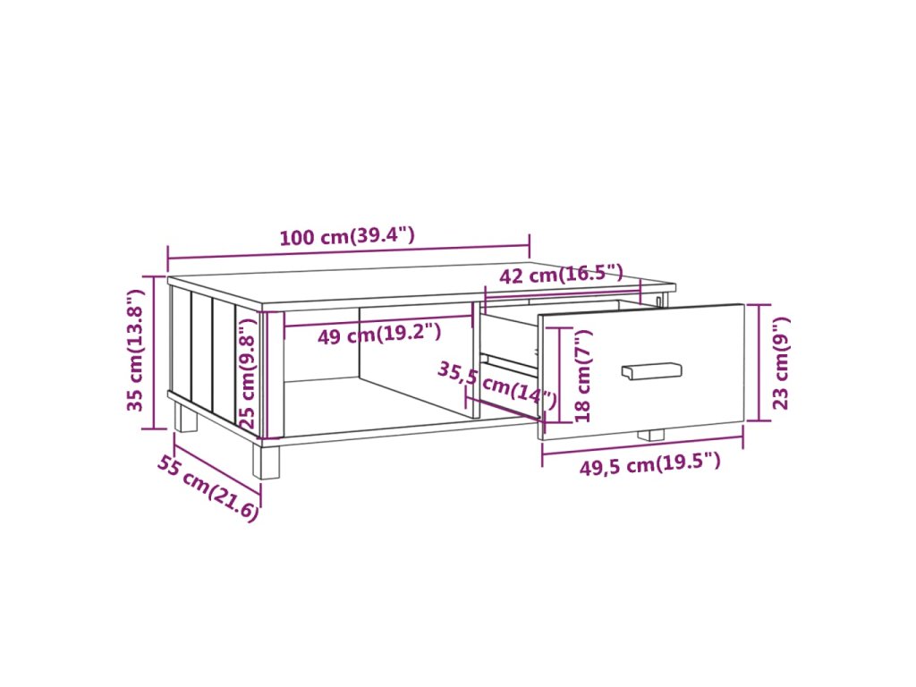 Tento středový stolek je vyroben z masivního borového dřeva, takže je stabilní a robustní. Stolní deska je ideální k umístění jídla a nápojů, dekorativních předmětů atd. Kromě toho má odkládací stolek zásuvku a přihrádku, které poskytují dostatek úložného prostoru pro časopisy, knihy a další nezbytnosti, které chcete mít po ruce.