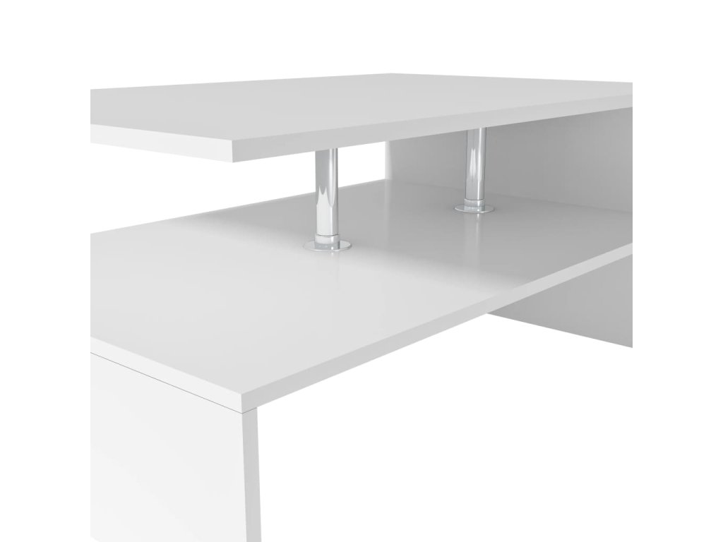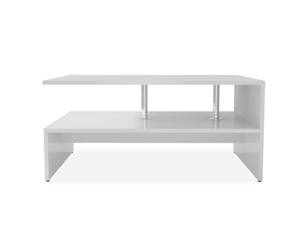 Konferenční stolek je vyroben z kompozitního dřeva s PVC hranami a je stabilní a odolný. Tento odkládací stolek se skládá ze dvou polic, které jsou spojeny na jedné straně a jsou podepřeny sloupky z nerezové oceli, které mu dodávají moderní vzhled. Mezi horní a dolní policí je velký prostor, díky němuž je tento stolek do obýváku velmi praktický pro ukládání knih, složek a dalších věcí.