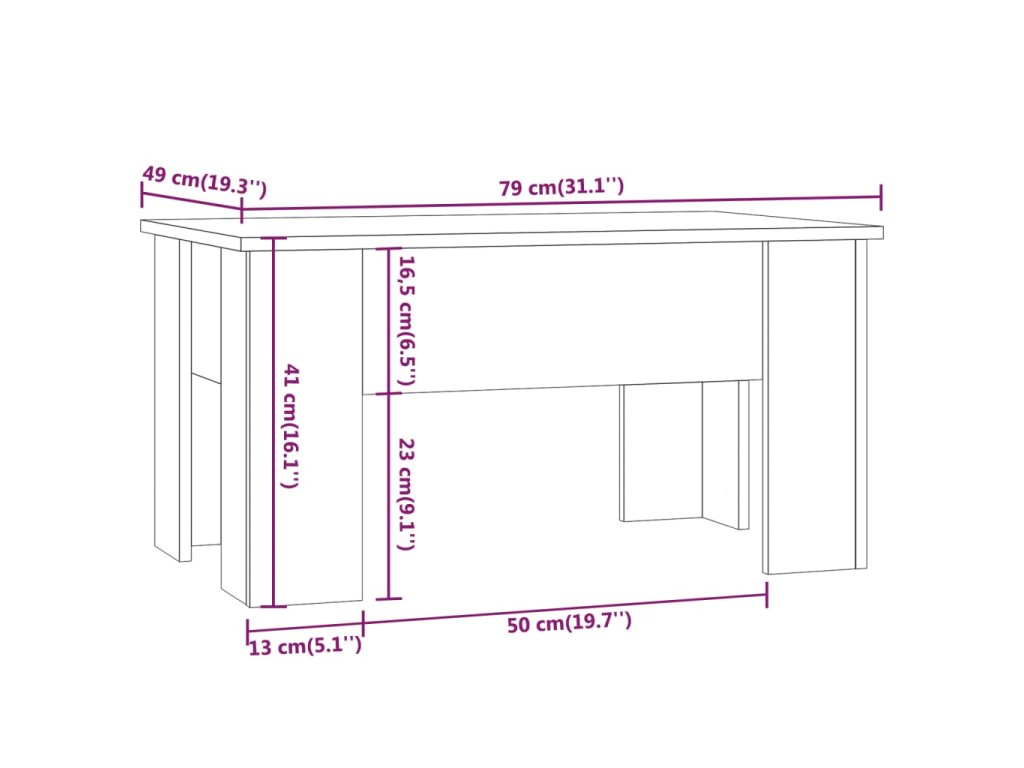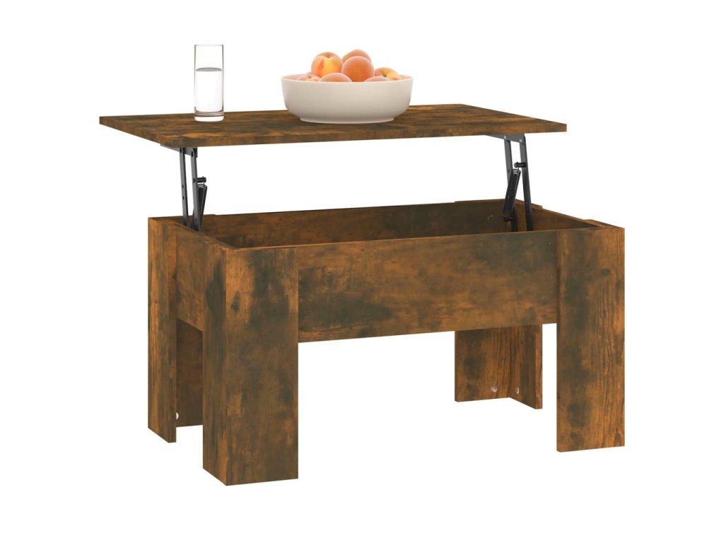 - Design se zvedací deskou: Stolní deska tohoto stolku k pohovce se dá hladce zvednout do pohodlné výšky, a tím jej přeměnit na místo, kde můžete pracovat nebo stolovat.