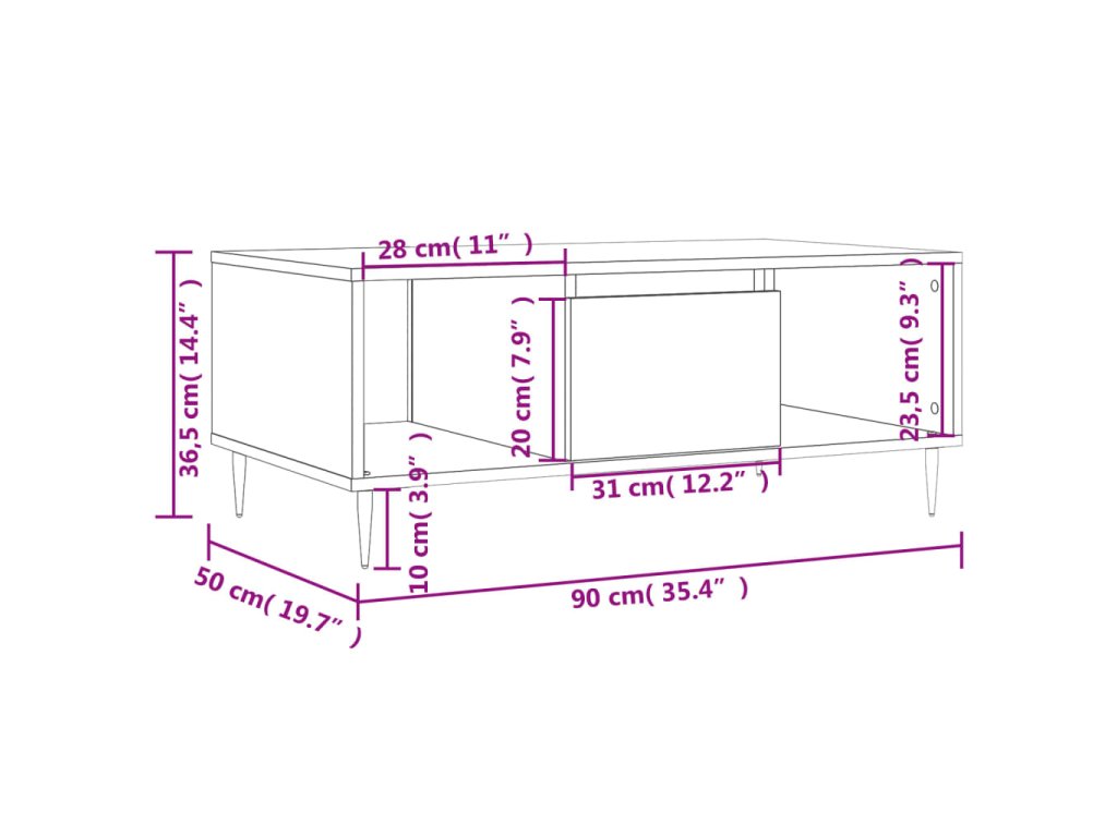 Konferenční stolek kouřový dub 90x50x36,5 cm kompozitní dřevo 830585
