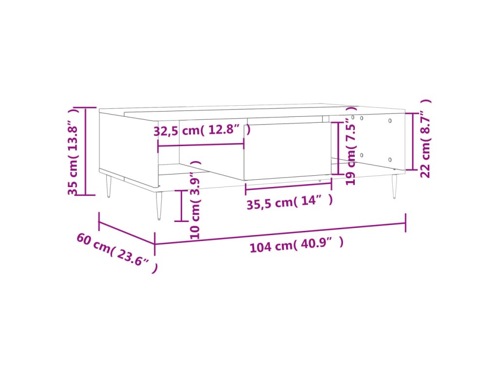 Konferenční stolek lesklý bílý 104x60x35 cm kompozitní dřevo 827078