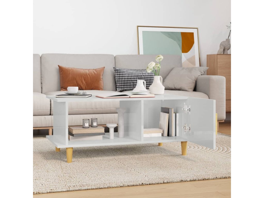 Konferenční stolek lesklý bílý 90 x 50 x 40 cm kompozitní dřevo 812750