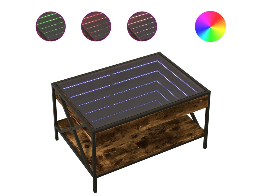 Jedinečný konferenční stolek s infinity LED zrcadlem je vhodný na různá místa.