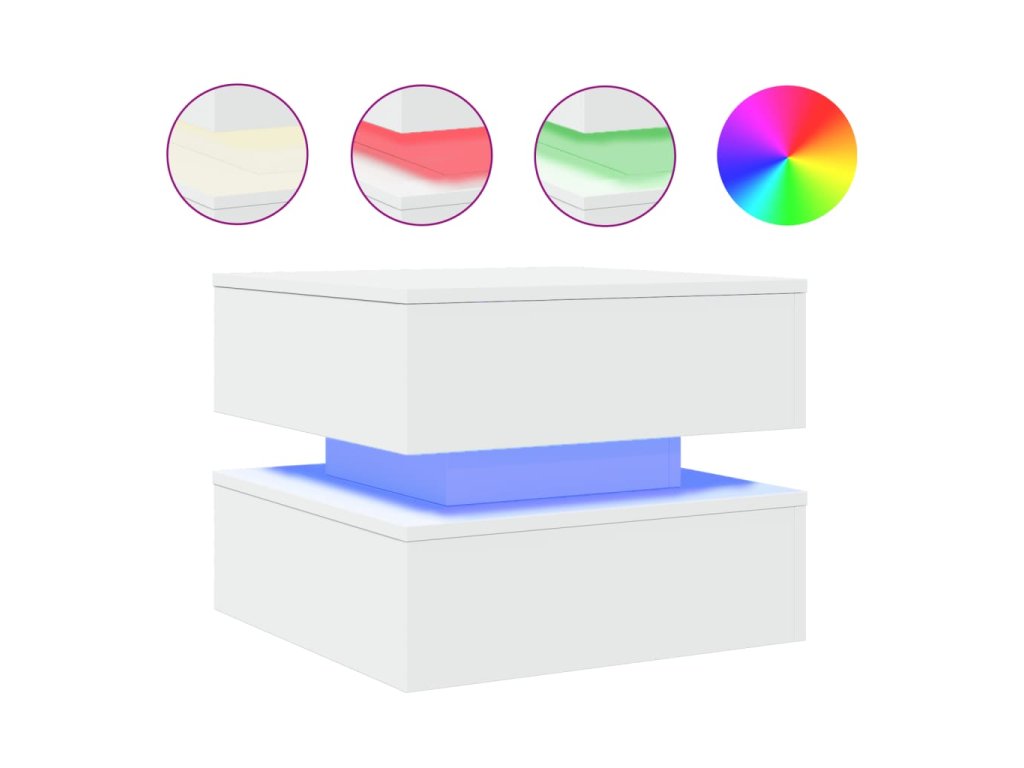 Konferenční stolek s LED osvětlením bílý 50 x 50 x 40 cm 839854