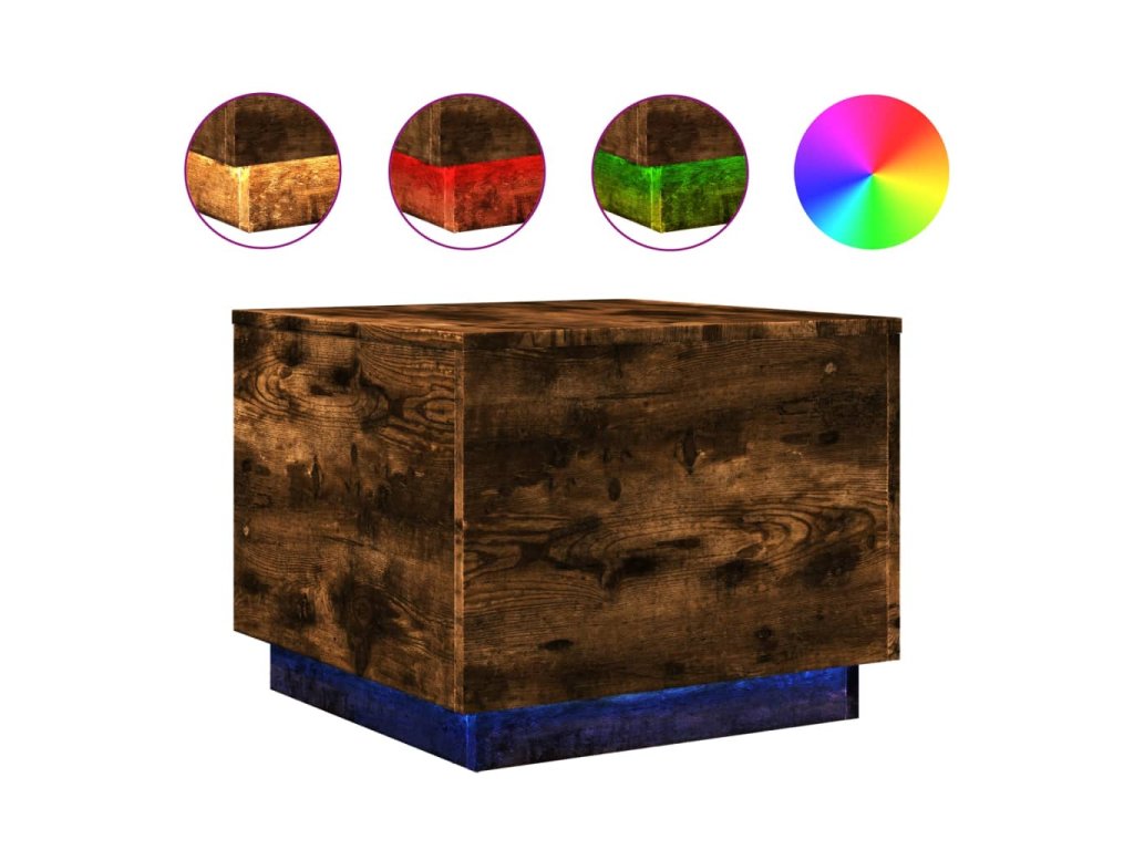 Konferenční stolek s LED osvětlením kouřový dub 50 x 50 x 40 cm 839872