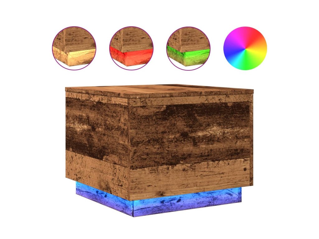Konferenční stolek s LED osvětlením old wood 50 x 50 x 40 cm 857720