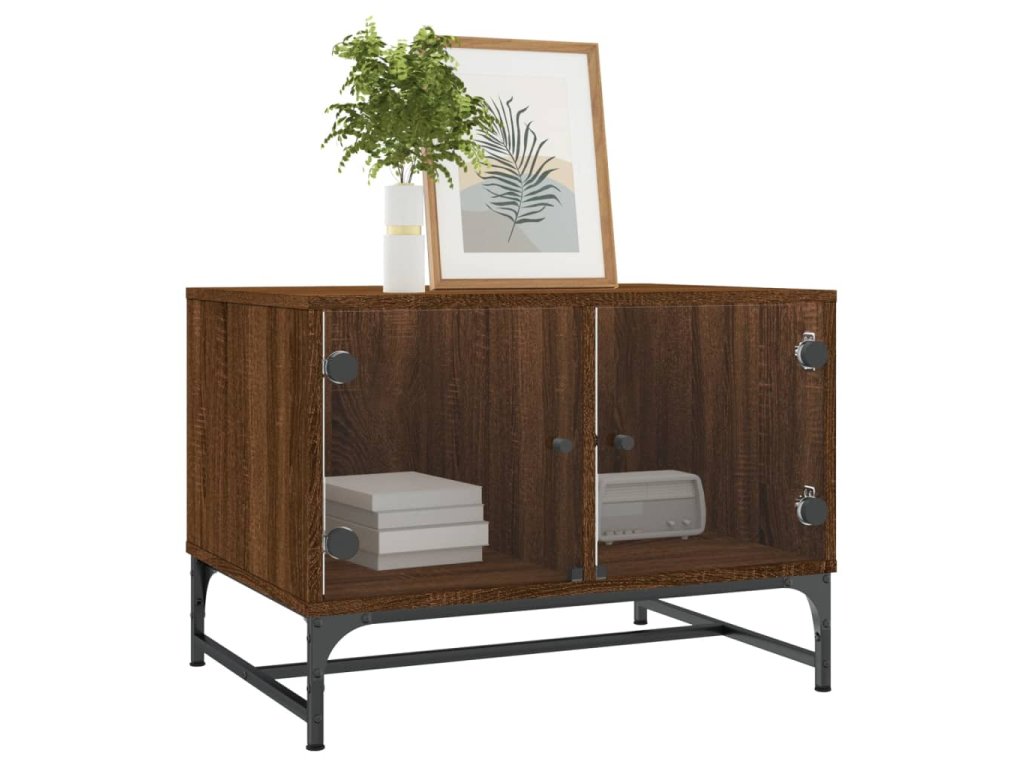 Konferenční stolek se skleněnými dvířky hnědý dub 68,5x50x50 cm 836545