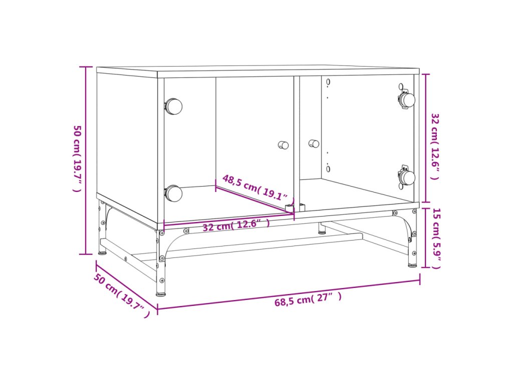 Konferenční stolek skleněná dvířka kouřový dub 68,5x50x50 cm 836543