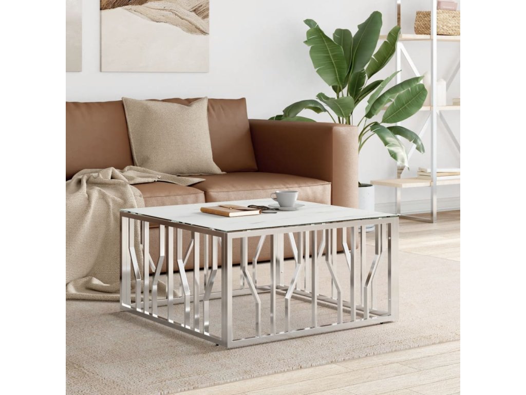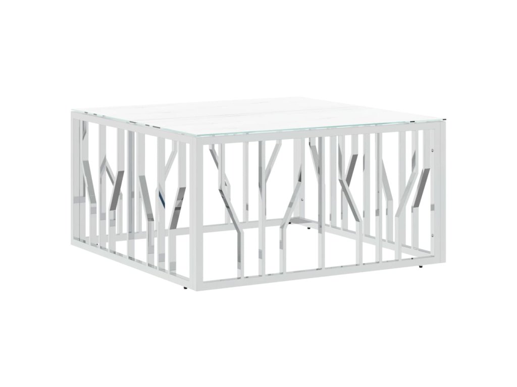 Konferenční stolek stříbrný 80x80x40 cm nerezová ocel a sklo 350059