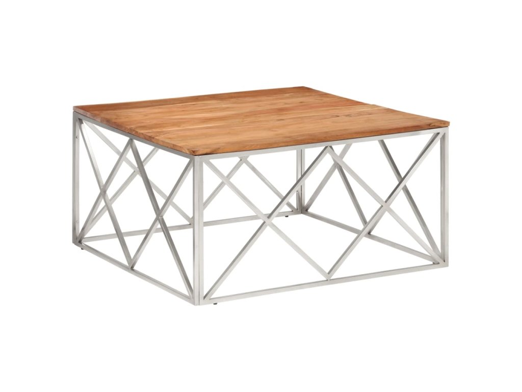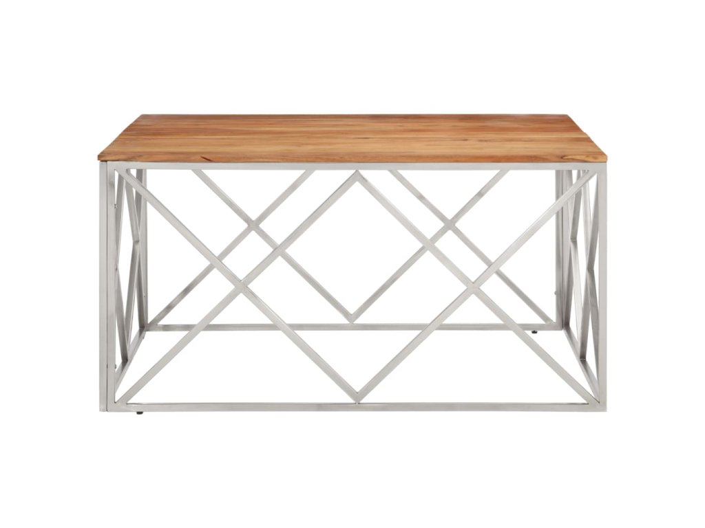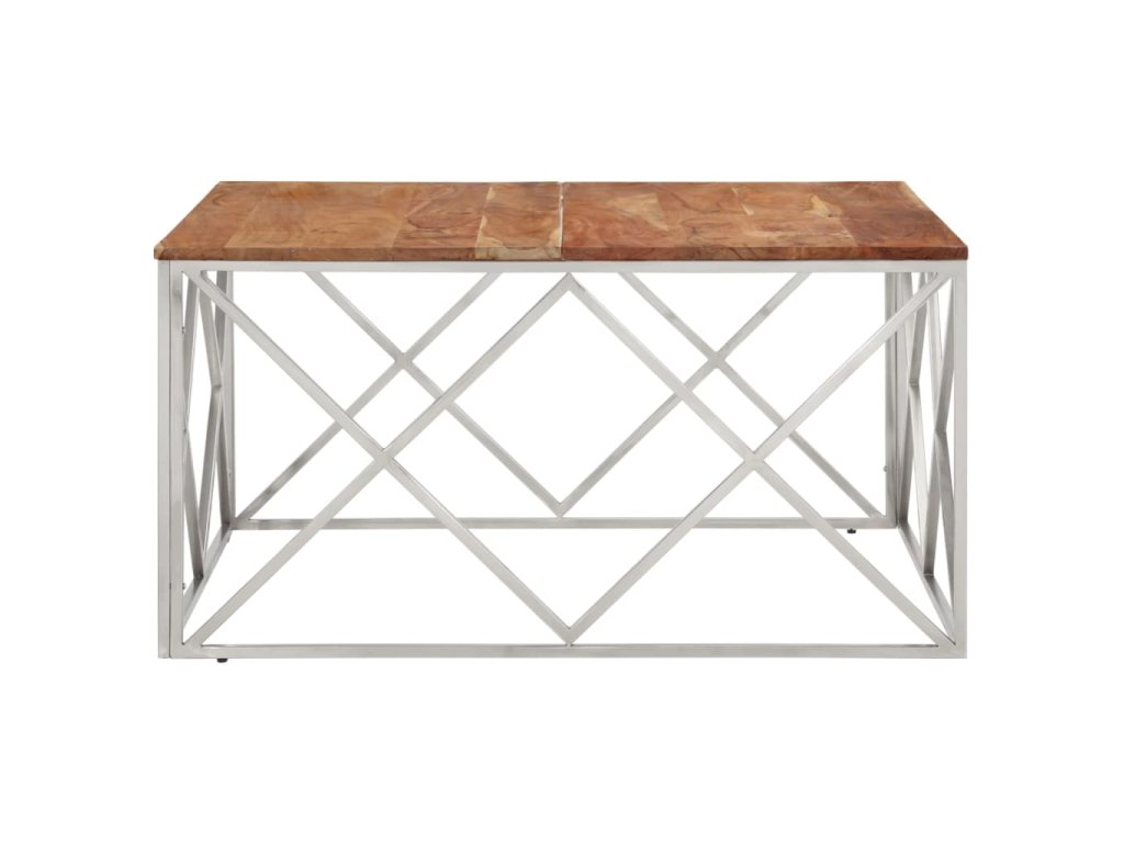 Konferenční stolek stříbrný nerezová ocel a masivní akácie 349983
