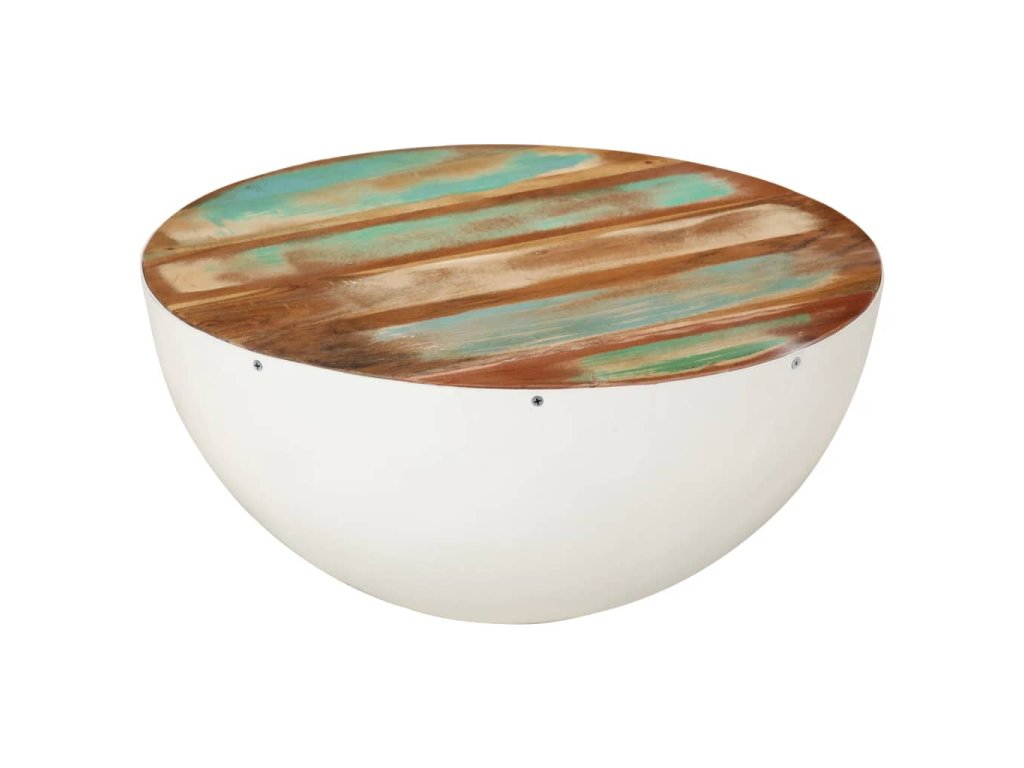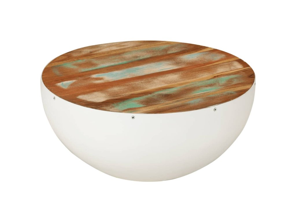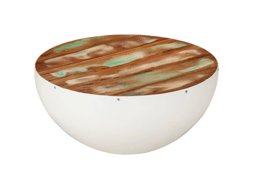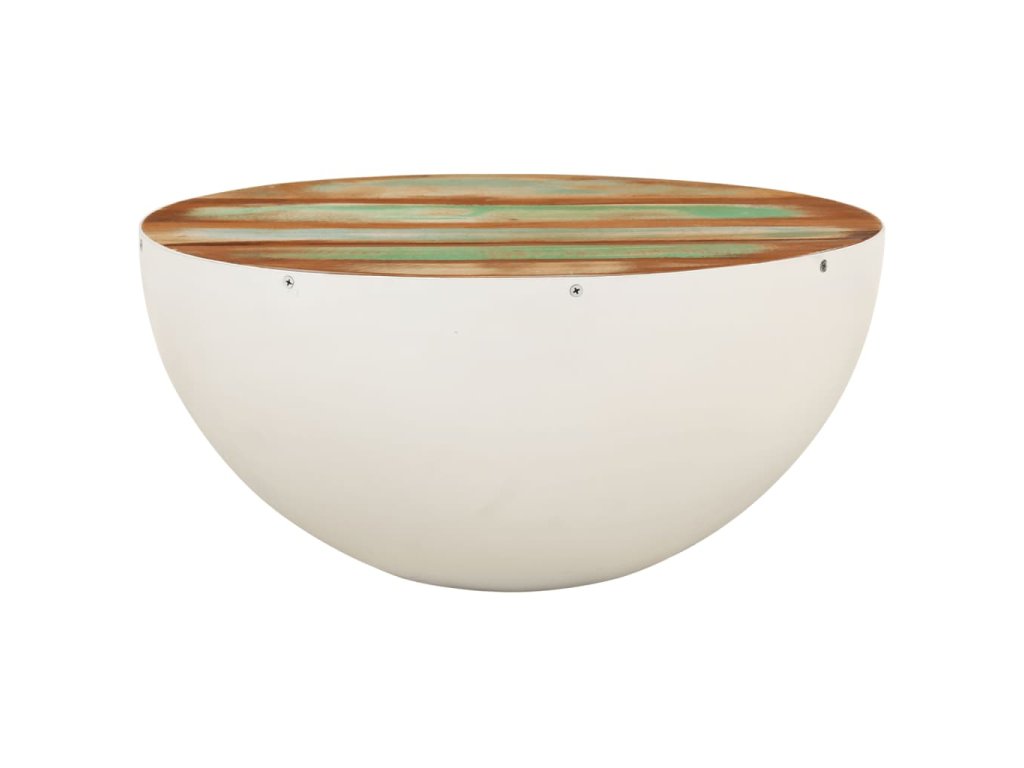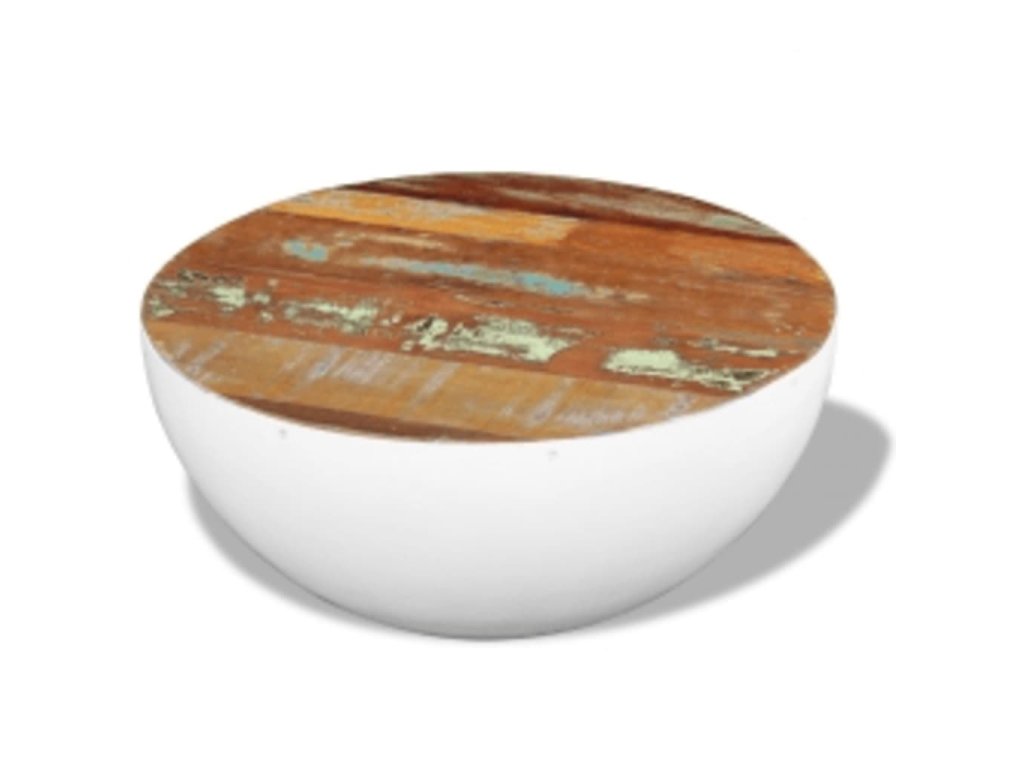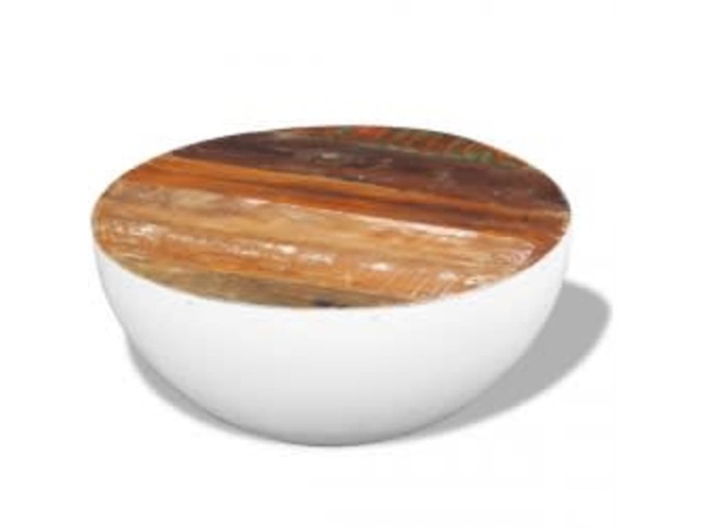 Konferenční stolek tvar mísy bílý Ø 50x24 cm recyklované dřevo 352020