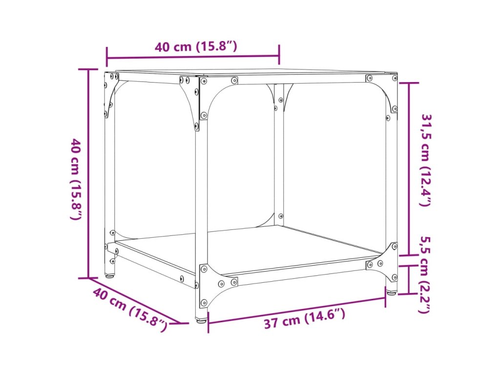 - Robustní a stabilní rám: Stolek do obývacího pokoje má rám z nerezové oceli, což mu zajišťuje mimořádnou pevnost a stabilitu.