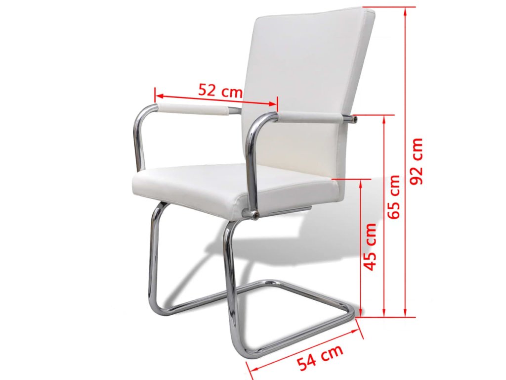 Tyto pohodlné židle mají vysoce kvalitní a pevnou konstrukci. Nohy těchto židlí jsou vyrobené z odolného železa, které židlím zaručuje stabilitu a snadné čištění. Silně polstrované sedáky a opěradla židlí z umělé kůže poskytují optimální pohodlí při sezení. A odolná konstrukce židlí vám zaručuje dlouhá léta užívání.