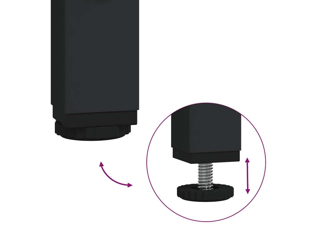 - Nastavitelné nohy: Čtyři nastavitelné nohy s plastovými podložkami udržují předsíňový stolek vyvážený na nerovném povrchu a zvyšují stabilitu.