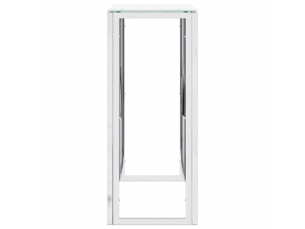 - Skleněná stolní deska: Tento předsíňový stolek má desku z tvrzeného skla s mramorovanou povrchovou úpravou, která mu dodává na kráse.