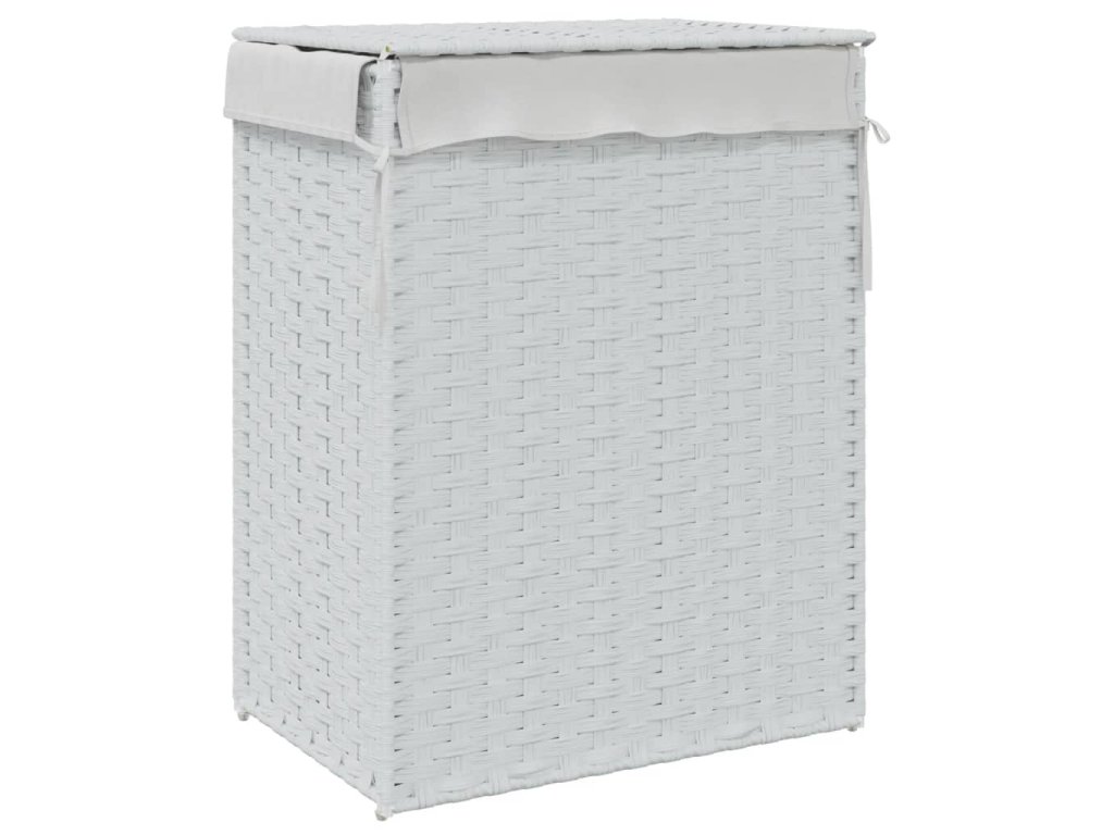 Koš na prádlo s víkem bílý 46 x 33 x 60 cm polyratan 372033