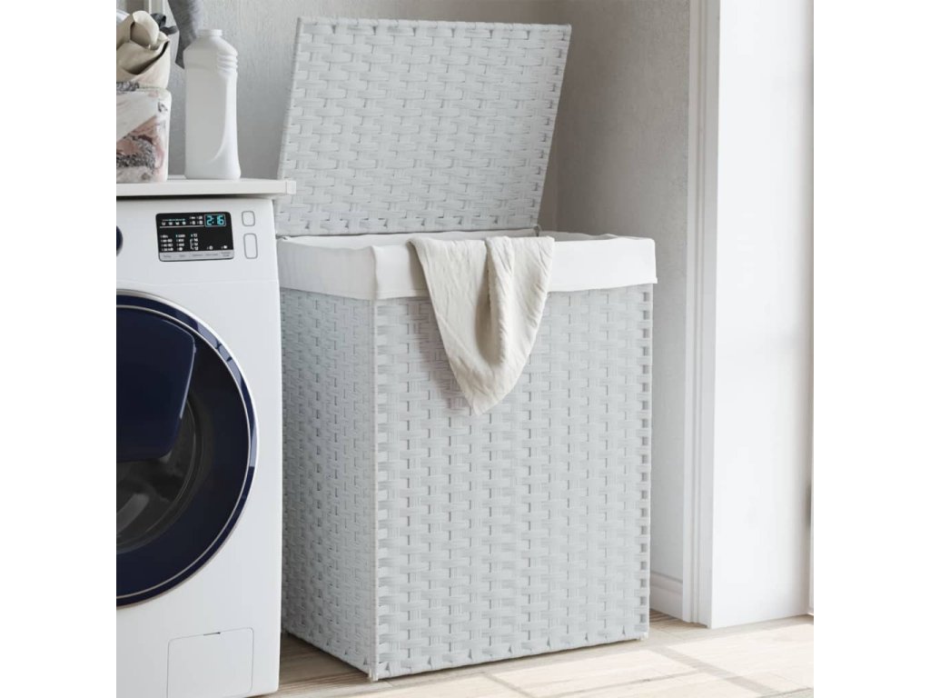 - Praktický design: Víko zabraňuje unikání nepříjemných pachů a chrání prádlo před prachem. Úchyt na boku vám usnadní přenášení koše do prádelny.