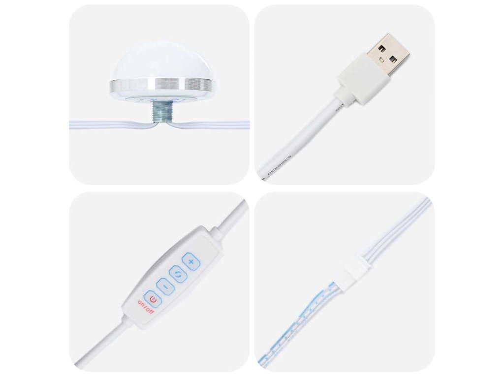 - Součásti: Flexibilní LED světla opravdu zvýrazňují vzhled a funkčnost vašeho prostoru. Poskytují super osvětlení na přípravu, kontrolu líčení nebo při výběru doplňků, bez ohledu na den.