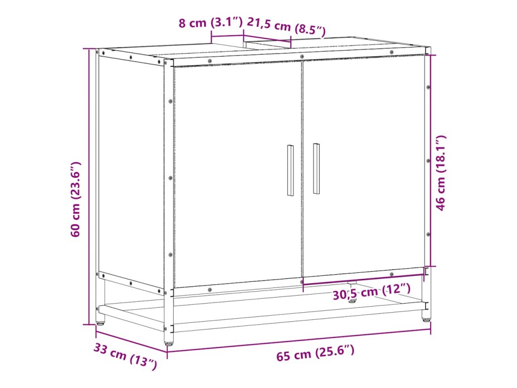 Koupelnová skříňka pod umyvadlo, dub sonoma, 65 x 33 x 60 cm, konstrukční dřevo 849265
