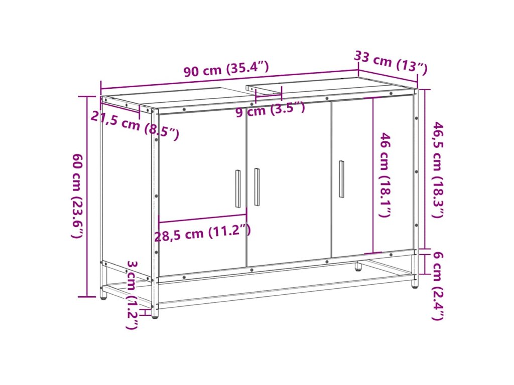 Koupelnová skříňka pod umyvadlo kouřový dub 90x33x60cm kompozit 849271