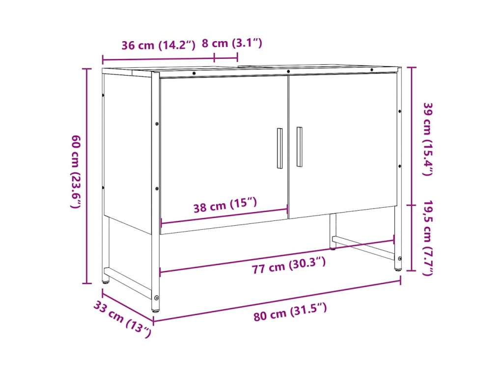 Koupelnová skříňka pod umyvadlo old wood 80x33x60 cm kompozit 857704