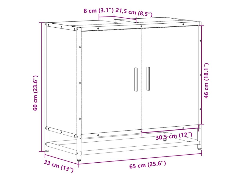 Koupelnová skříňka pod umyvadlo šedá sonoma 65x33x60cm kompozit 849267