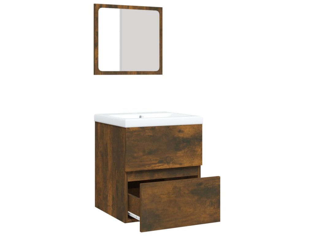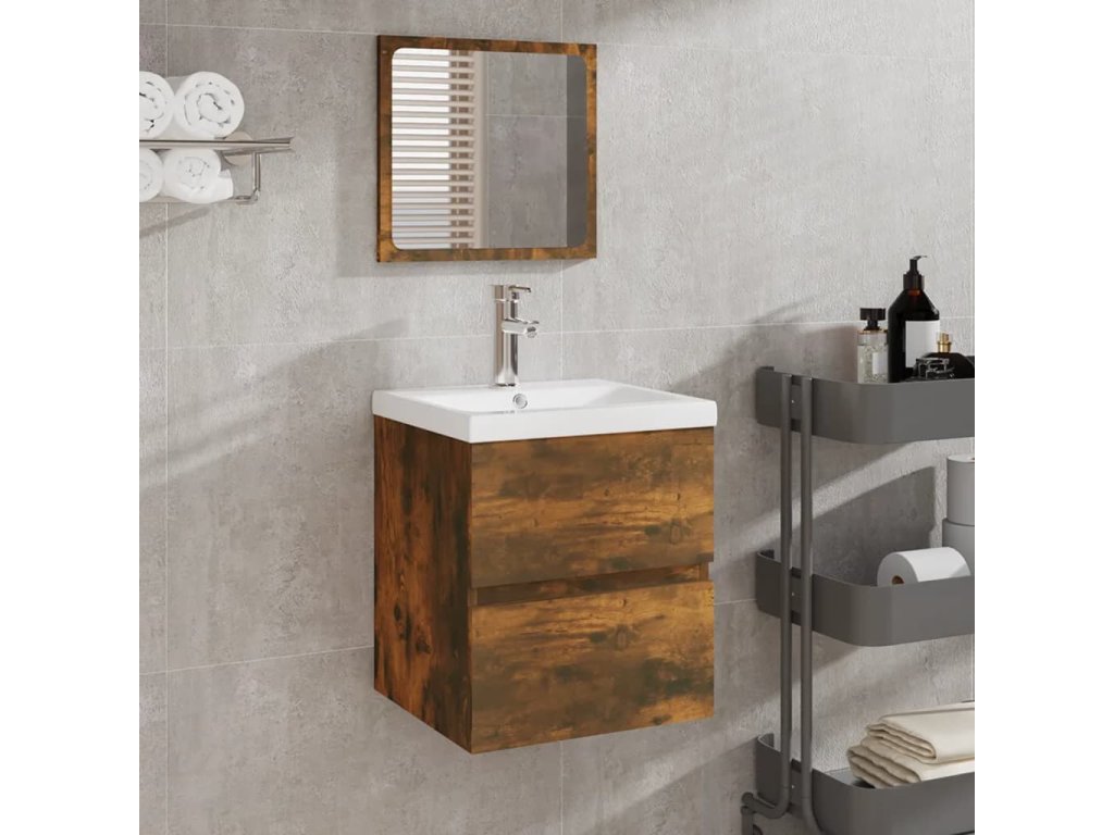 Koupelnová skříňka s umyvadlem a zrcadlem kouřový dub 3114176