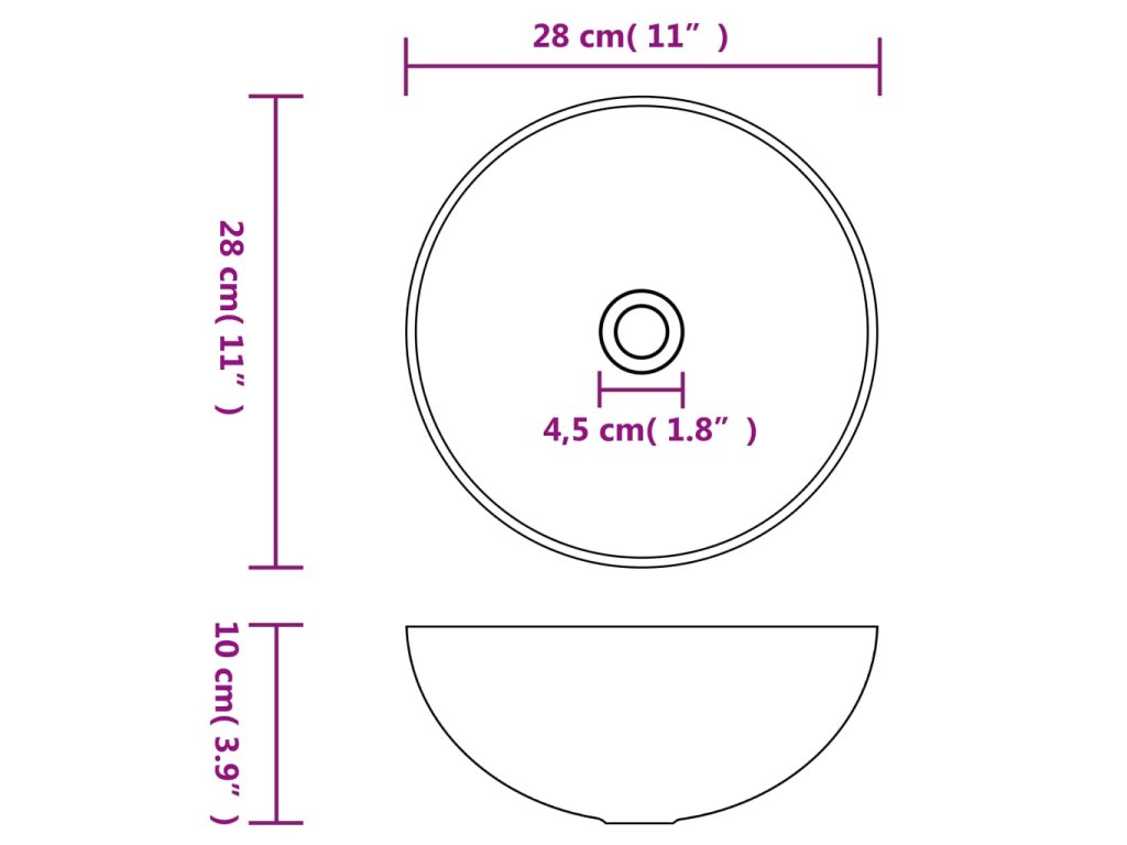 Kvalitní keramika s matným povrchem se snadno čistí. Jelikož umyvadlo nemá přepad a instaluje se na desku, působí velice čistým a elegantním dojmem. Uprostřed se nachází odtokový otvor o průměru 4,5 cm. Upozorňujeme, že kohoutek není součástí balení.