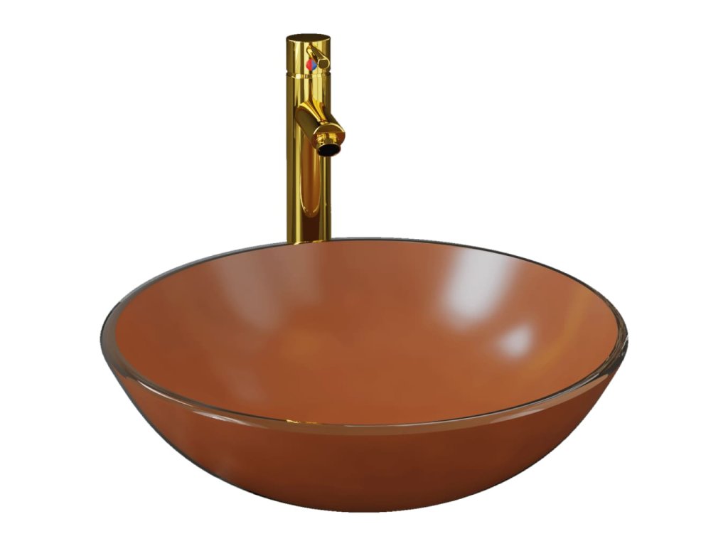 Koupelnové umyvadlo s baterií a výpustí hnědé tvrzené sklo 3098456