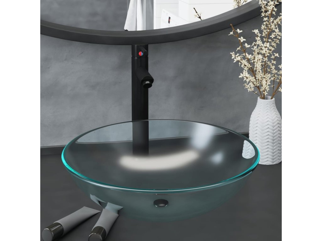 Umyvadlo je celé vyrobené z tvrzeného skla, takže dokáže snášet vyšší teploty, aniž by se nějak poškodilo. Baterie a odtokové potrubí jsou ze zinku a mosazi, jsou tedy odolné a zajišťují dlouhou životnost. Umyvadlo navíc disponuje jednoduchou zátkou click/clack a snadno se používá i čistí. Atraktivní umyvadlo vám nejen poslouží jako praktický doplněk pro každodenní použití, ale zároveň se stane ozdobou vašeho bydlení.
