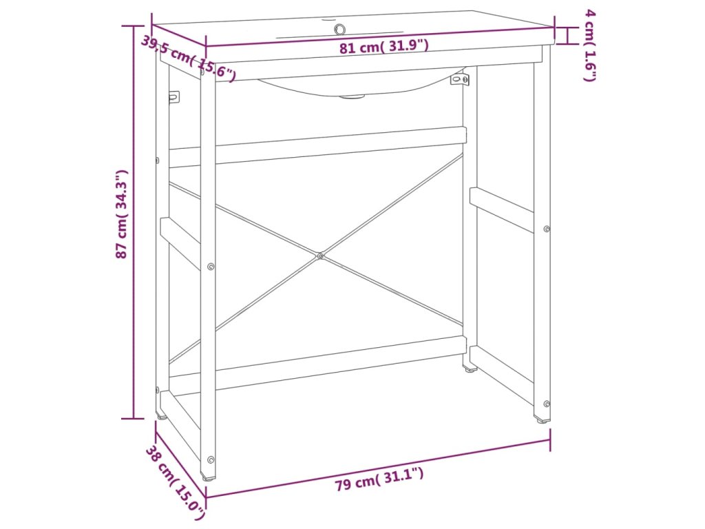 Stojan je vyroben z práškově lakovaného železa, takže je stabilní a odolný. Tento umyvadlový rám umožňuje snadný přístup k ručníkům a košíčkům a nabízí větší úložný prostor než uzavřené skříňky. Keramické umyvadlo je kromě praktického využití také ozdobou vašeho obytného prostoru. Se svým moderním designem se toto umyvadlo hodí do každého interiéru. Je vybavené přepadem pro odtékání vody a jeho glazovaný povrch přináší moderní a elegantní design. Rám i umyvadlo se navíc snadno čistí vlhkým hadříkem.