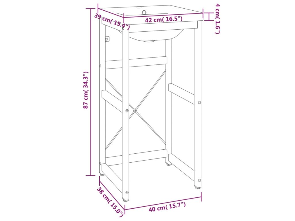 Stojan je vyroben z práškově lakovaného železa, takže je stabilní a odolný. Tento umyvadlový rám umožňuje snadný přístup k ručníkům a košíčkům a nabízí větší úložný prostor než uzavřené skříňky. Keramické umyvadlo je kromě praktického využití také ozdobou vašeho obytného prostoru. Se svým moderním designem se toto umyvadlo hodí do každého interiéru. Je vybavené přepadem pro odtékání vody a jeho glazovaný povrch přináší moderní a elegantní design. Rám i umyvadlo se navíc snadno čistí vlhkým hadříkem.