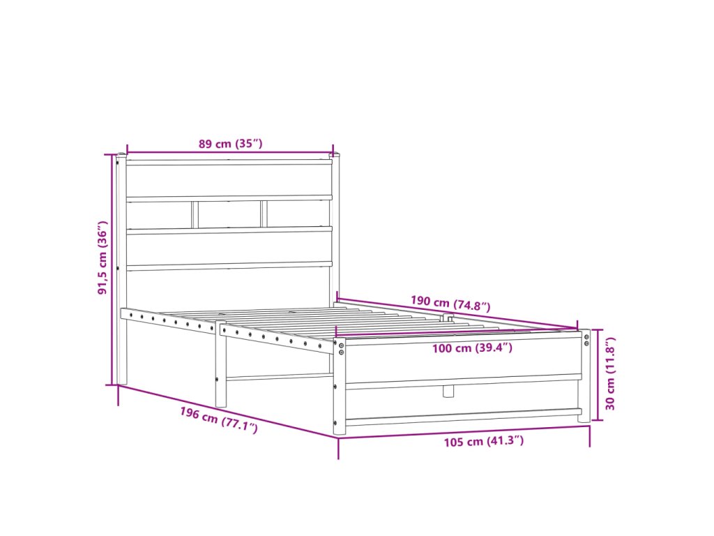 Kovový rám postele bez matrace dub sonoma 100 x 190 cm 4017266