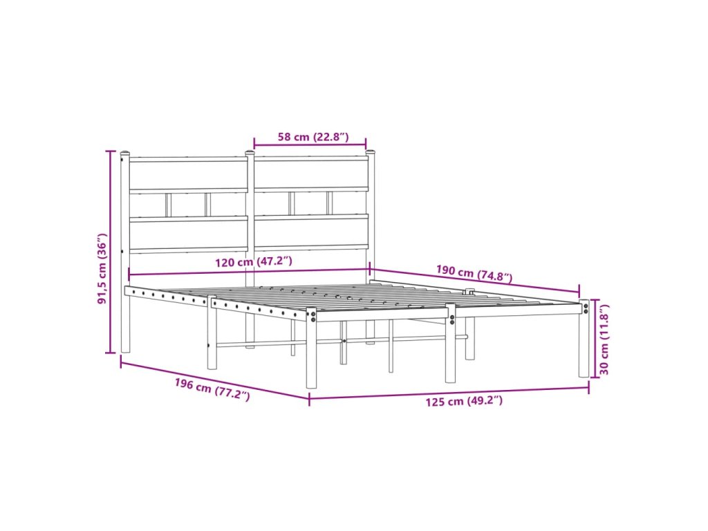Kovový rám postele bez matrace dub sonoma 120 x 190 cm 4017099