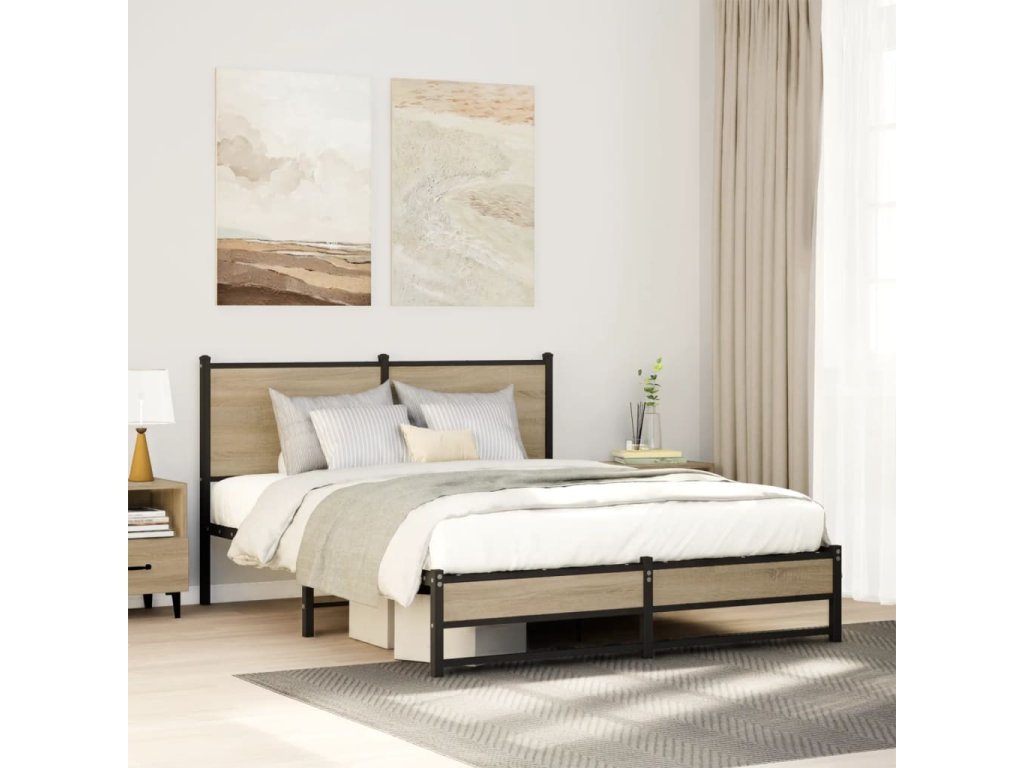 Kovový rám postele bez matrace dub sonoma 140 x 190 cm 4007886