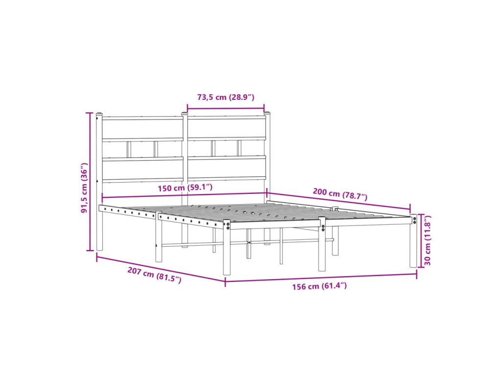 Kovový rám postele bez matrace dub sonoma 150 x 200 cm 4017104