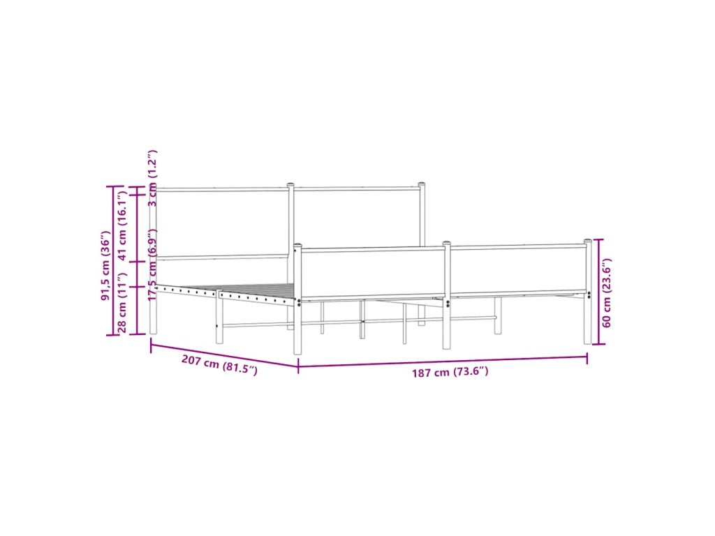 Kovový rám postele bez matrace dub sonoma 180 x 200 cm 3301401
