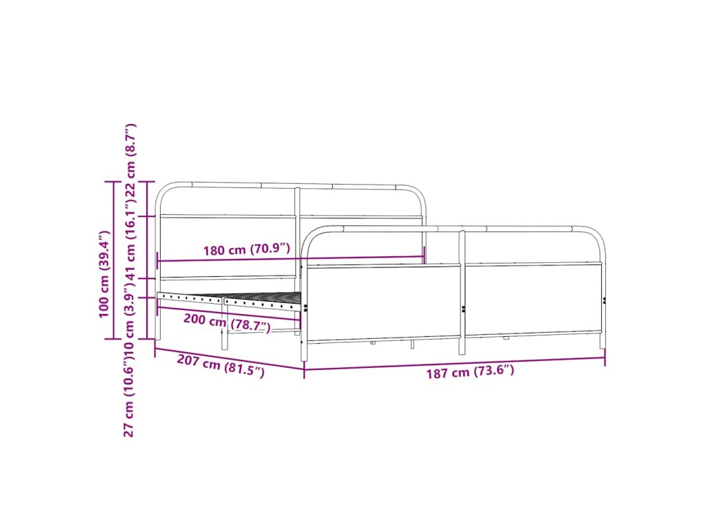 Kovový rám postele bez matrace dub sonoma 180 x 200 cm 3318652