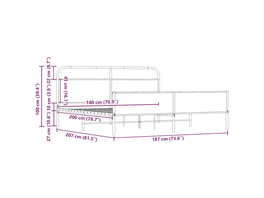 Kovový rám postele bez matrace dub sonoma 180 x 200 cm 3318695