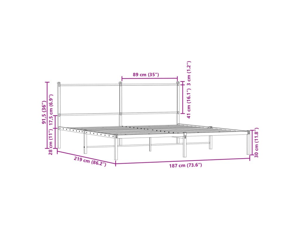 Kovový rám postele bez matrace dub sonoma 183 x 213 cm 4007721