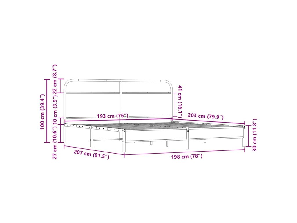 Kovový rám postele bez matrace dub sonoma 193 x 203 cm 3318686