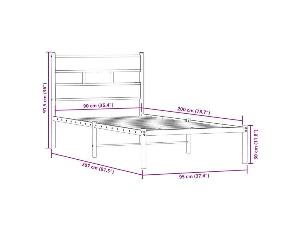 Kovový rám postele bez matrace dub sonoma 90 x 200 cm 4017095