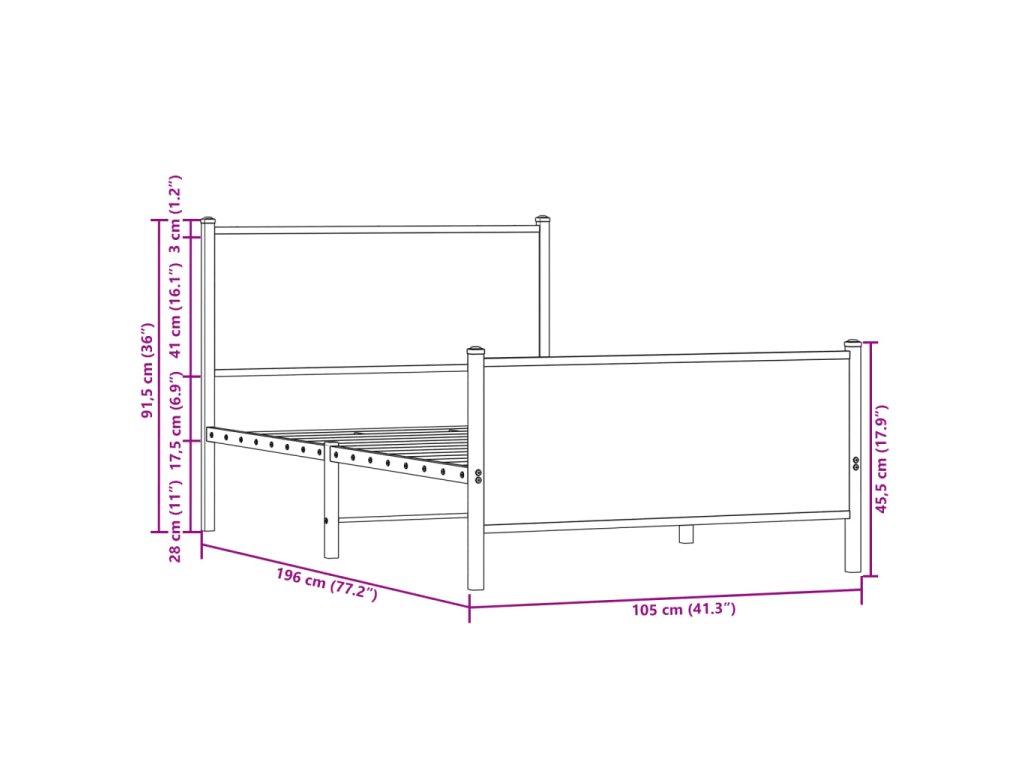 Kovový rám postele bez matrace hnědý dub 100 x 190 cm 4007777