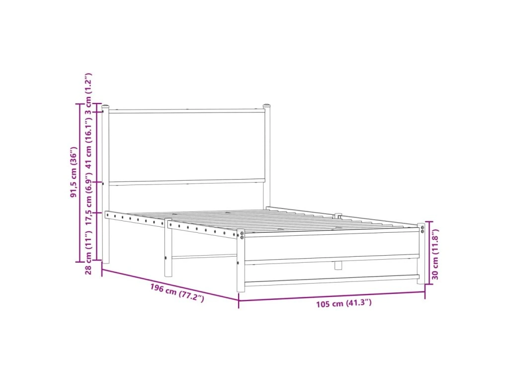 Kovový rám postele bez matrace hnědý dub 100 x 190 cm 4007934