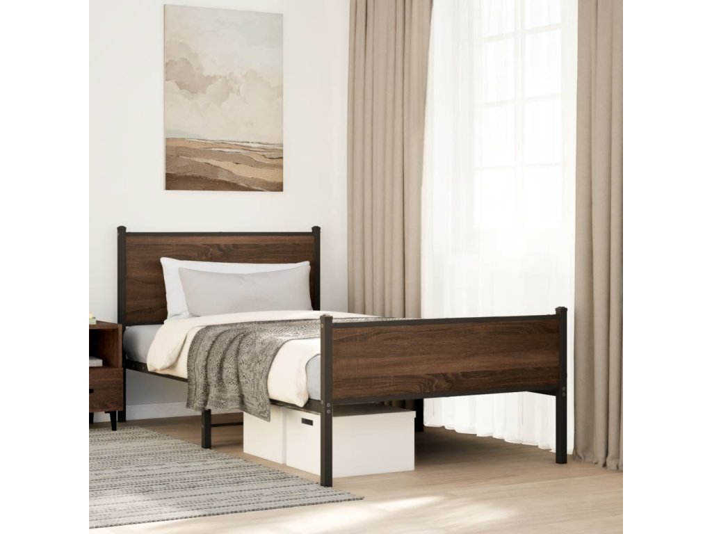 Kovový rám postele bez matrace hnědý dub 100 x 190 cm 4007952